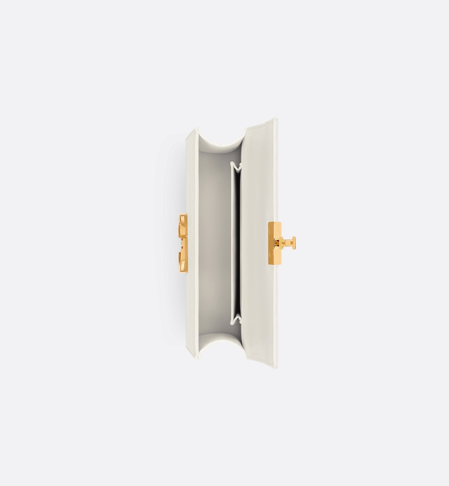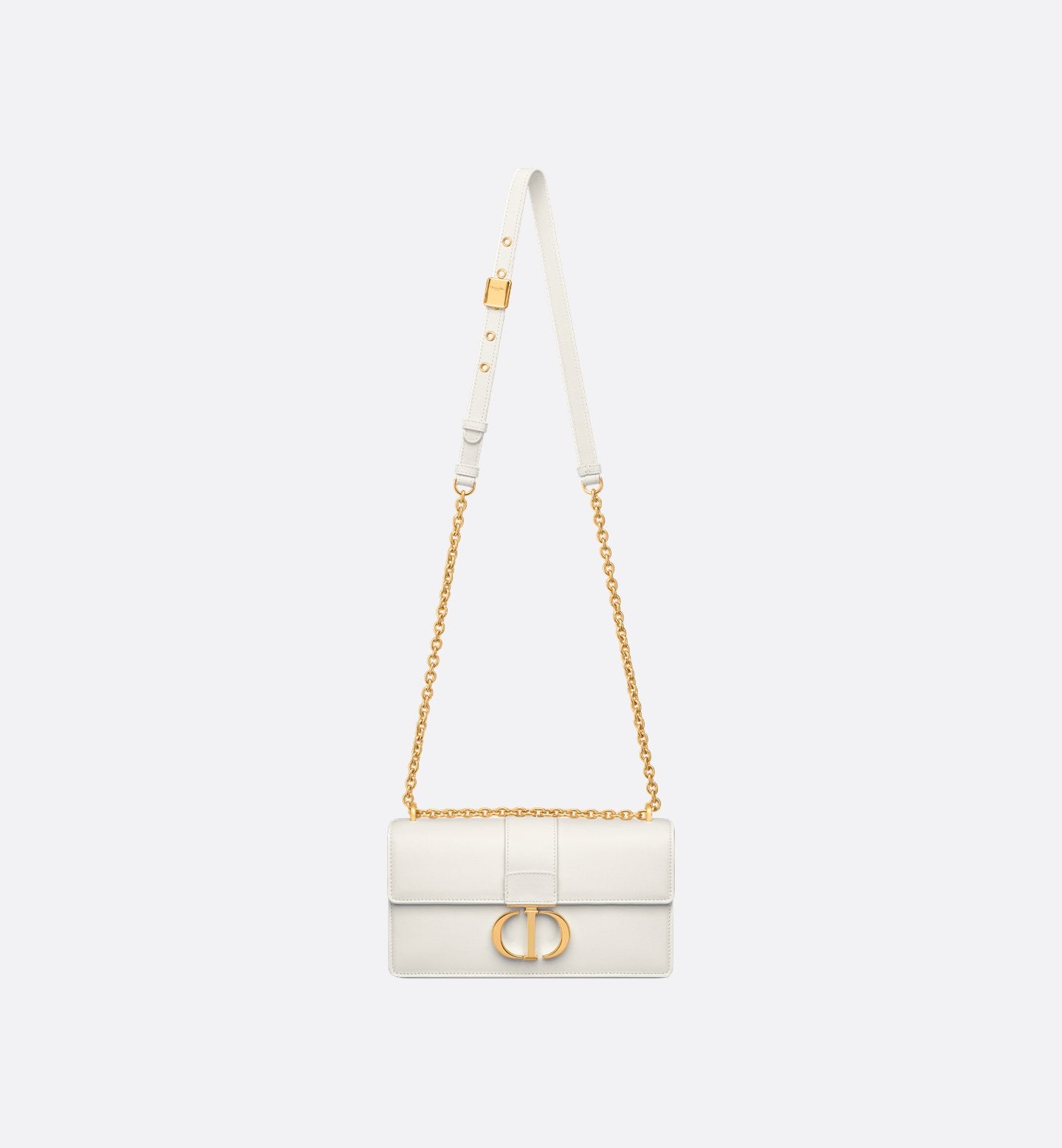 The East-West bag with chain enhances the 30 Montaigne line with a timeless and elegant design crafted in latte calfskin. The flap has an antique gold-finish metal CD clasp, inspired by the seal of a Christian Dior perfume bottle. Other details, like the embossed 30 Montaigne signature on the back, highlight the streamlined design. The bag features a removable chain strap with a leather insert that allows it to be comfortably carried by hand, worn over the shoulder or crossbody.