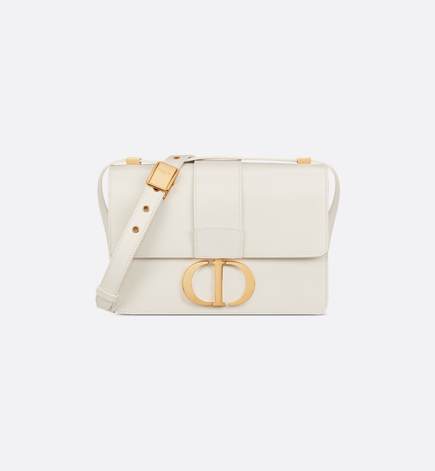Inspired by the Maison's emblematic address, the 30 Montaigne line offers essential designs embellished with the most iconic Dior elements. Crafted from milky Box calfskin, this bag features an elegant and modern design. The flap is embellished with a beautiful gold-finish metal CD clasp, inspired by the seal on Christian Dior perfume bottles. Refined details such as the 30 Montaigne signature embossed on the back add character to this extraordinary design. Featuring an adjustable leather shoulder strap, it can be carried by hand, on the shoulder or crossbody.