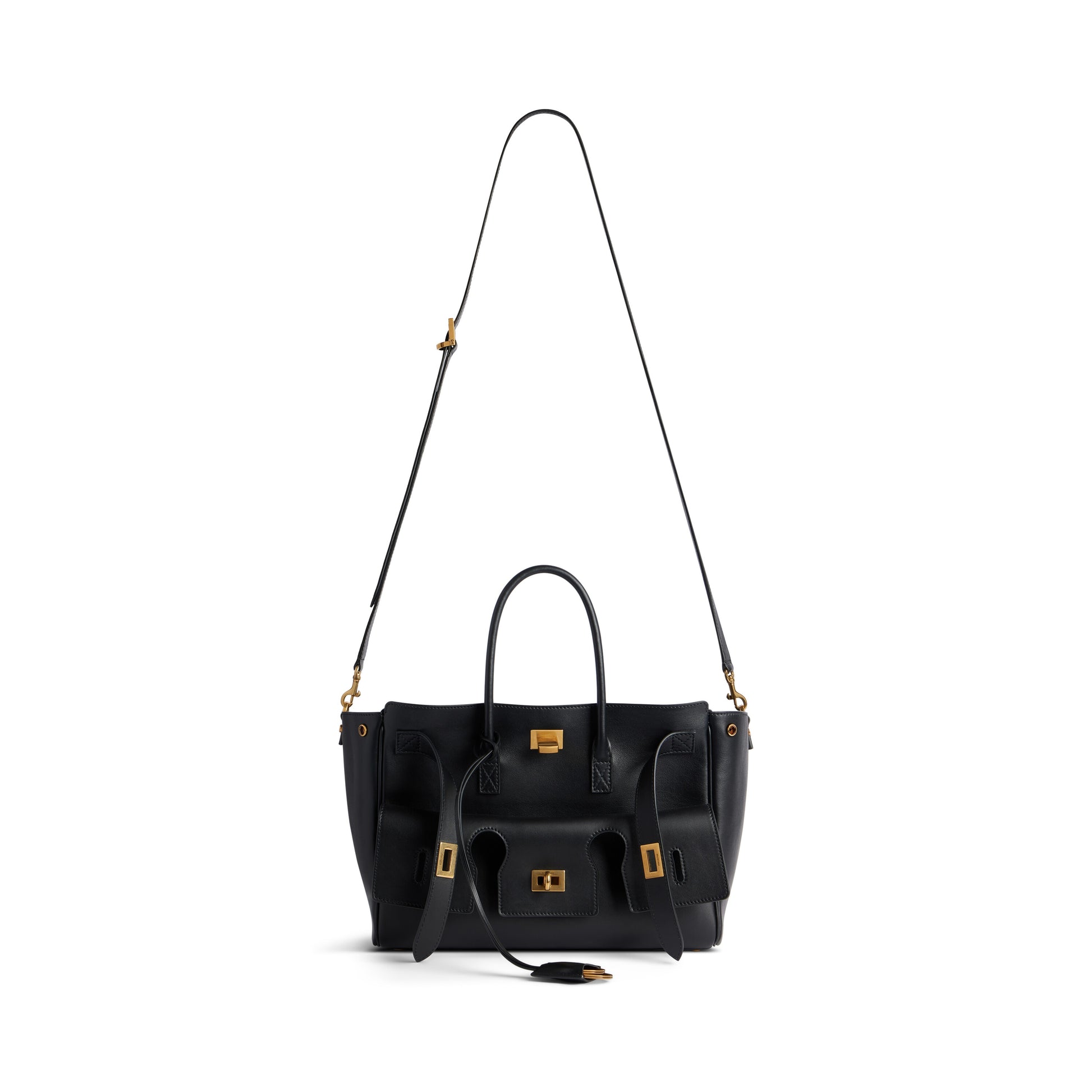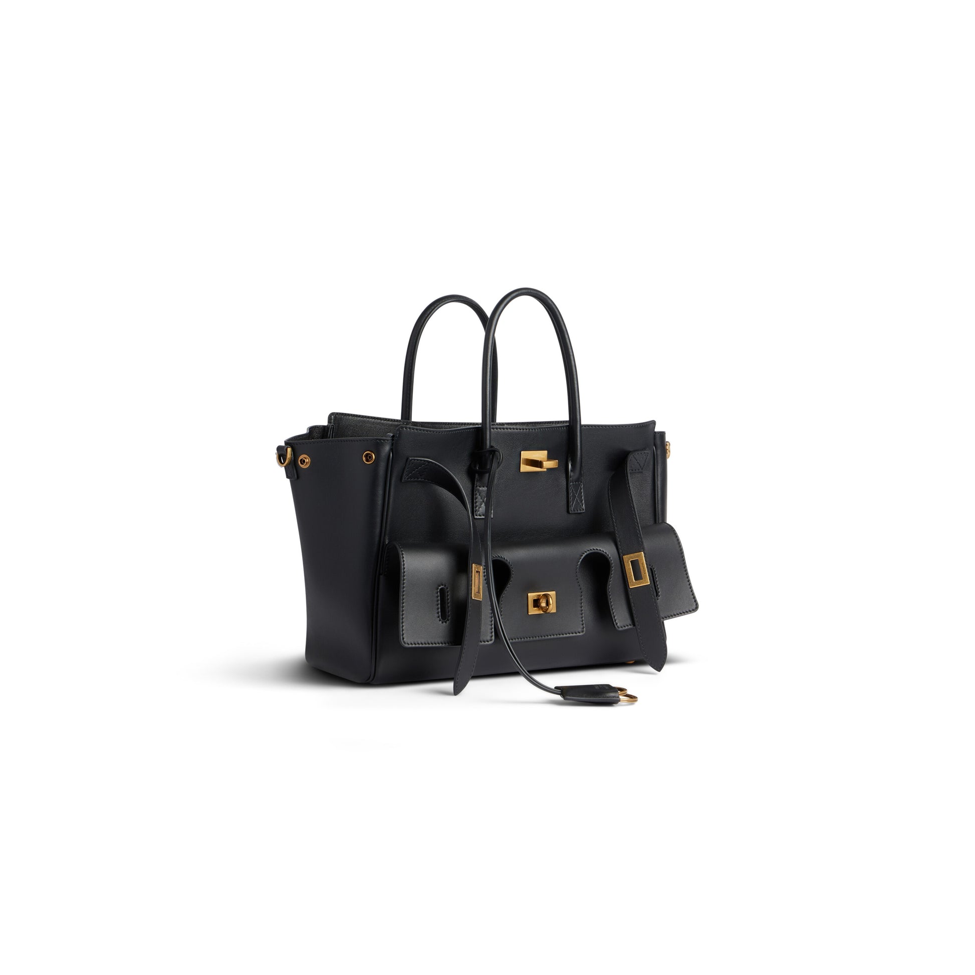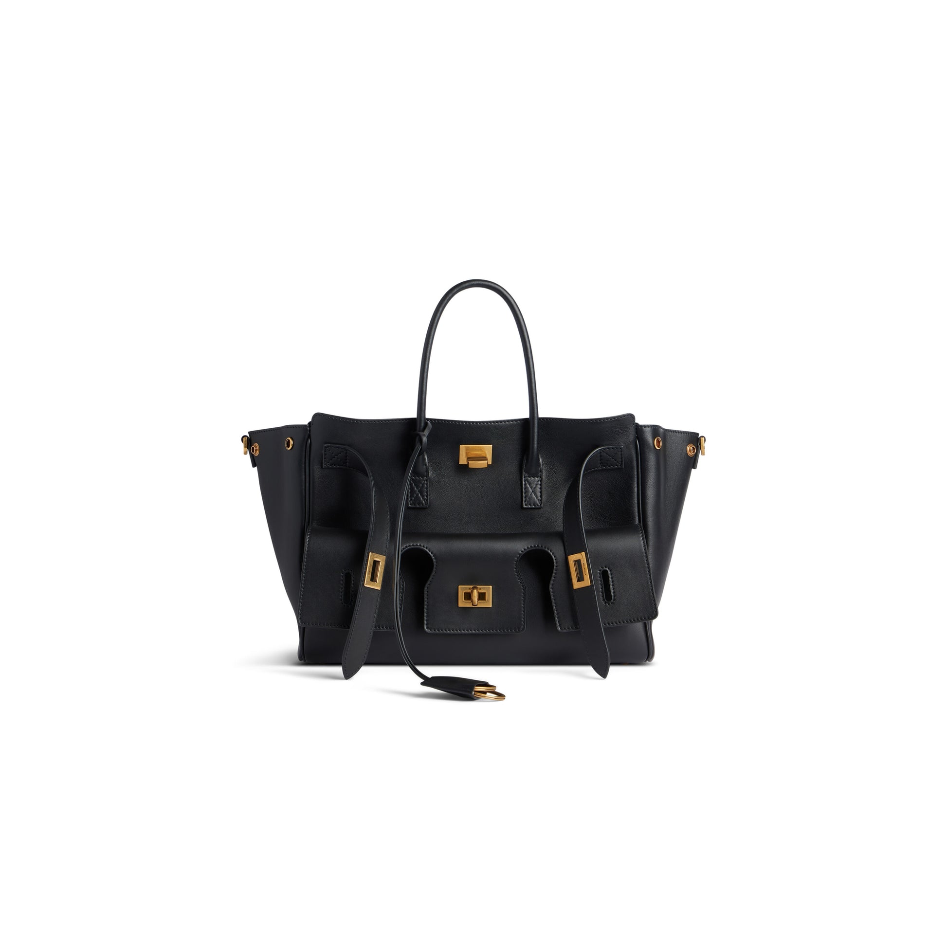 Bel Air Small Carry All Bag in black smooth calfskin, aged-gold hardware