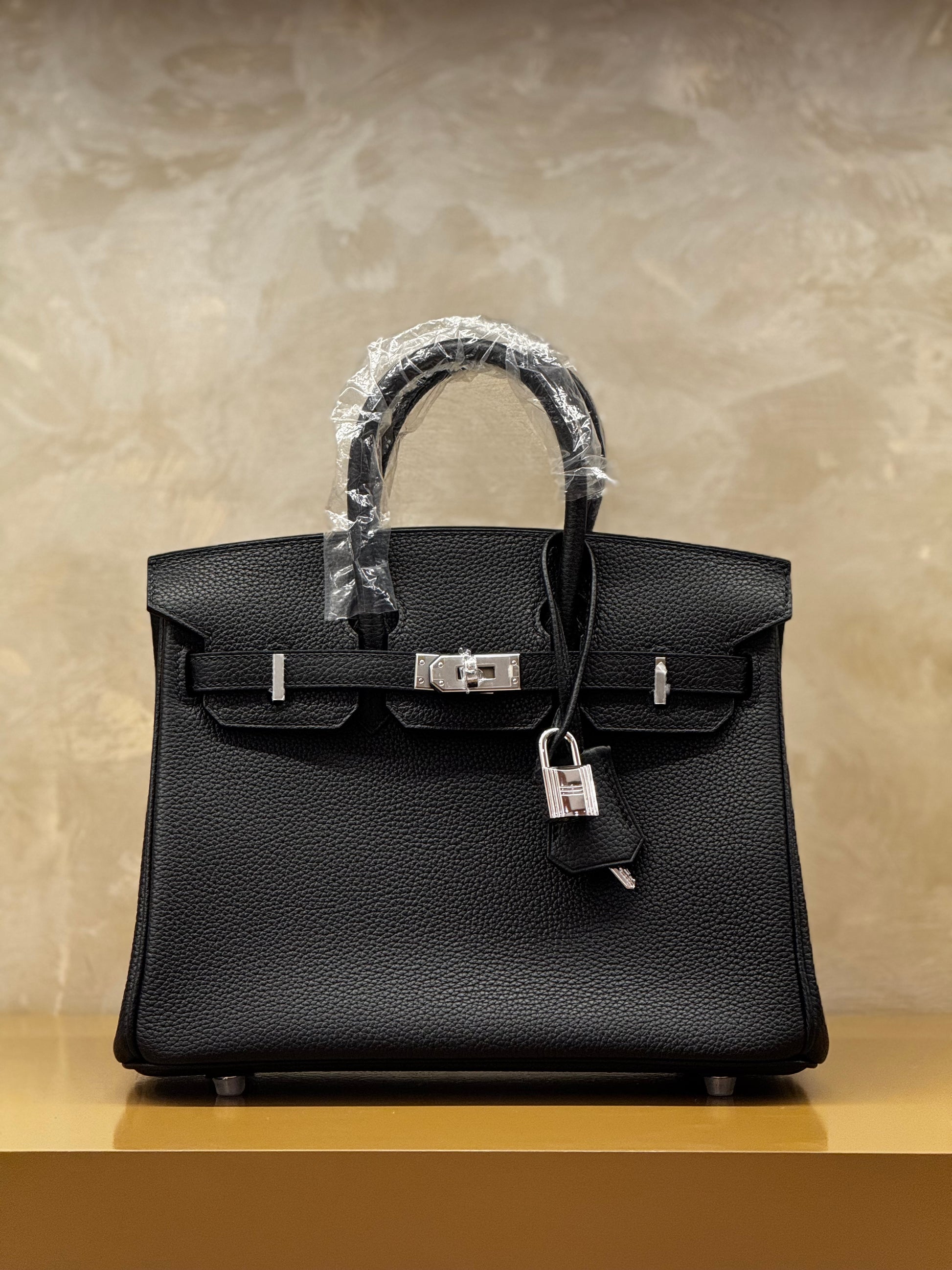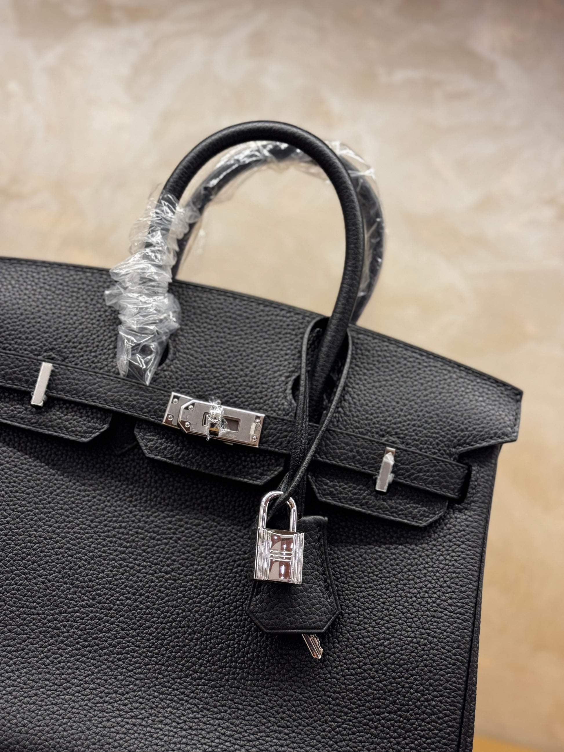 Hermès Birkin 25 black togo leather silver hardware half handmade