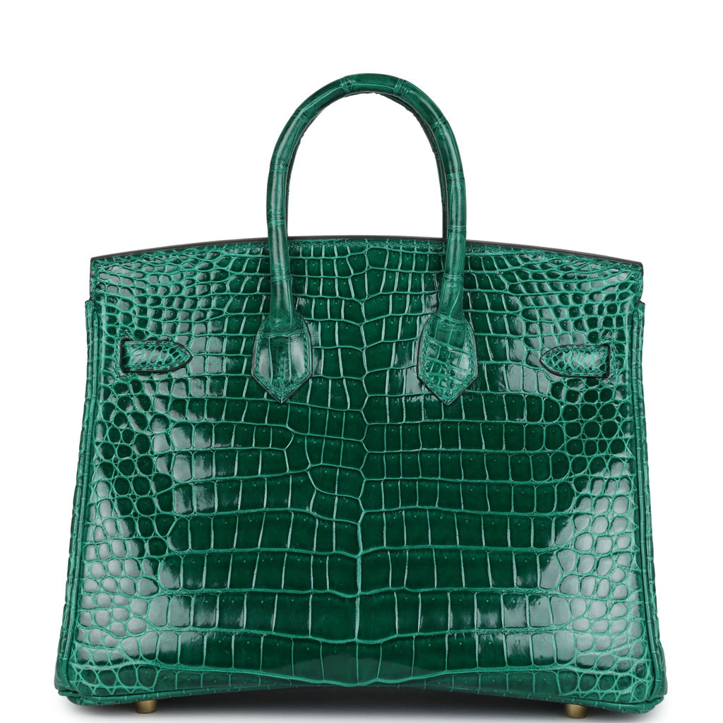 Hermès Birkin 25 Emerald Shiny Porosus Crocodile Gold Hardware