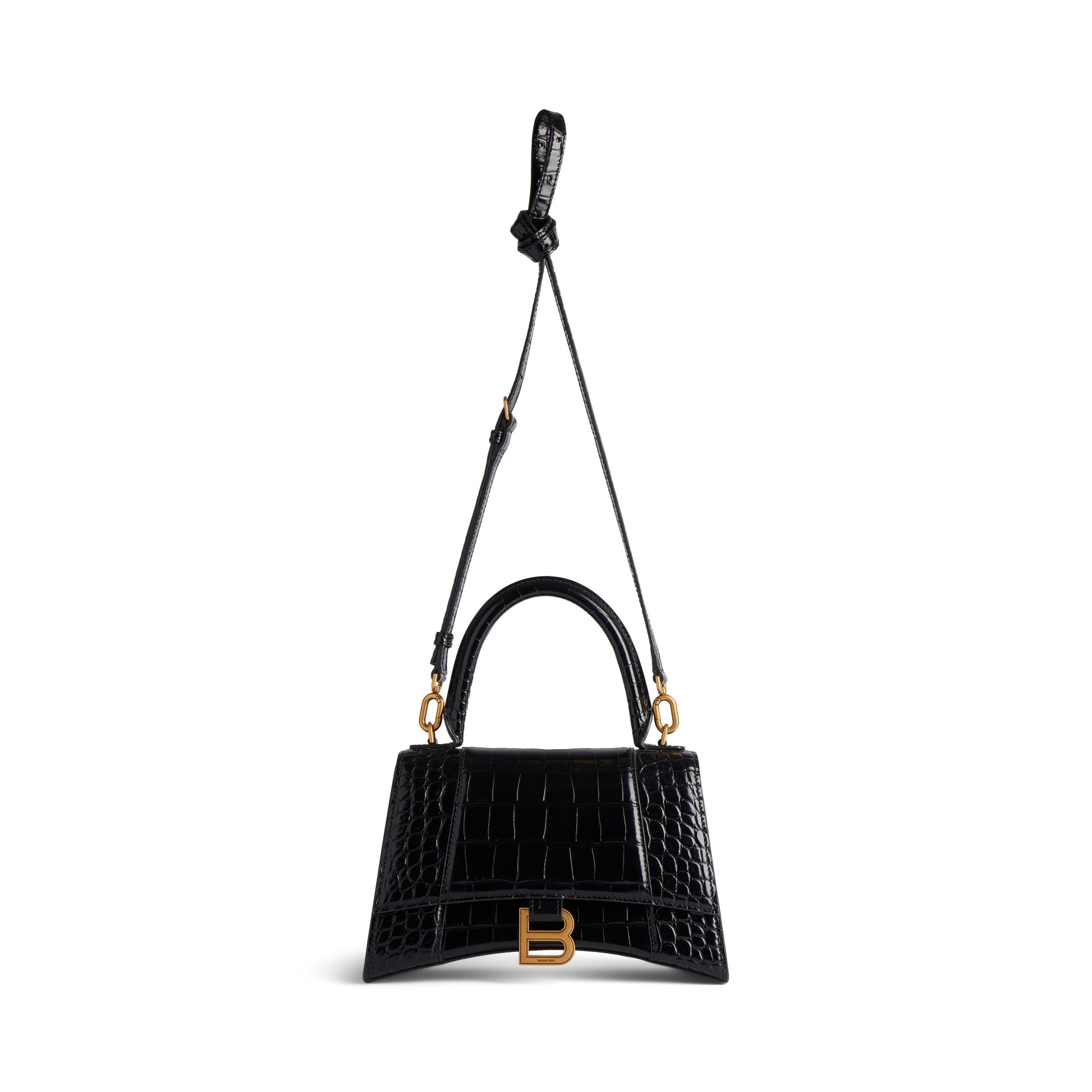Hourglass Small Handbag in black crocodile embossed calfskin
