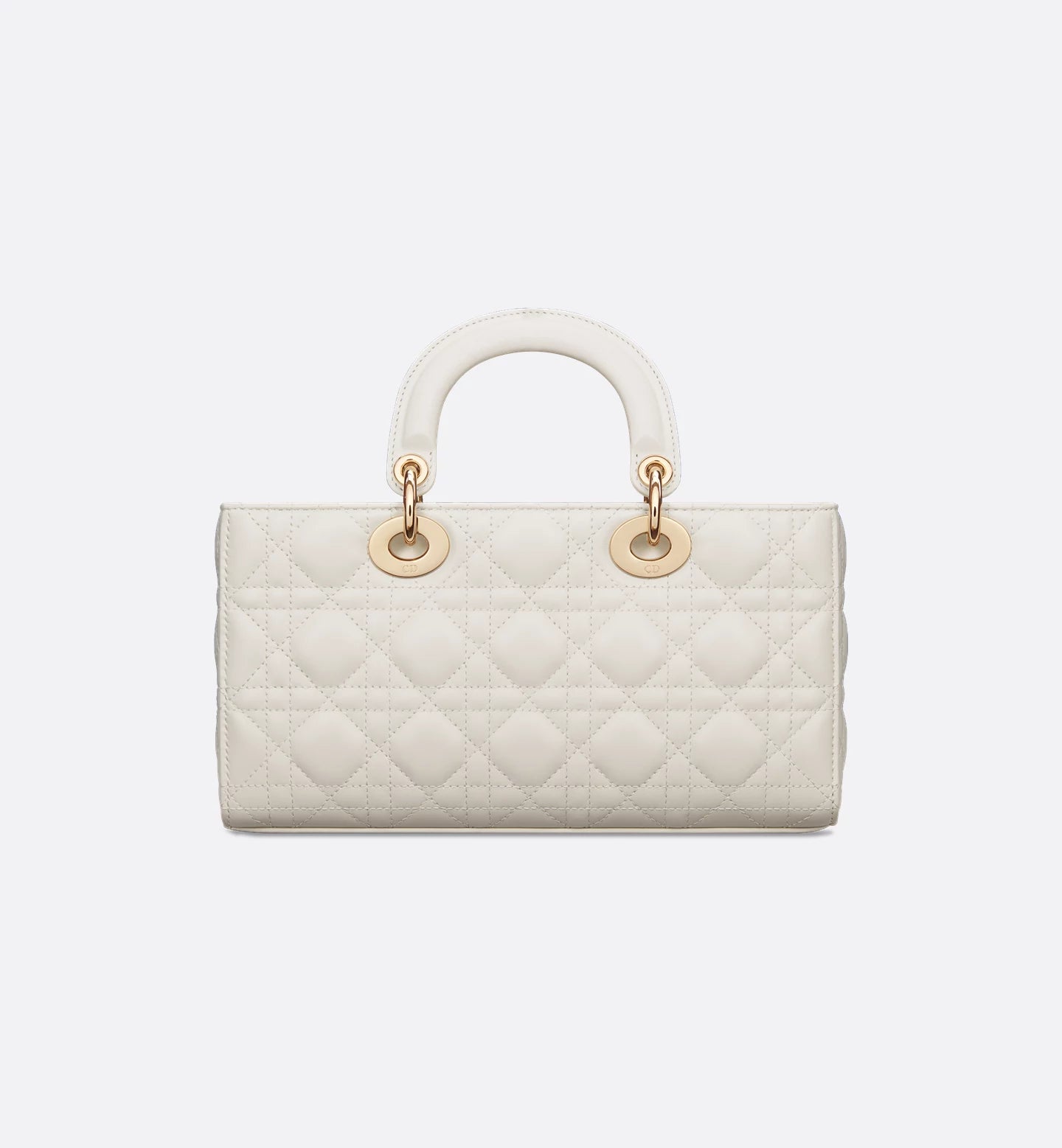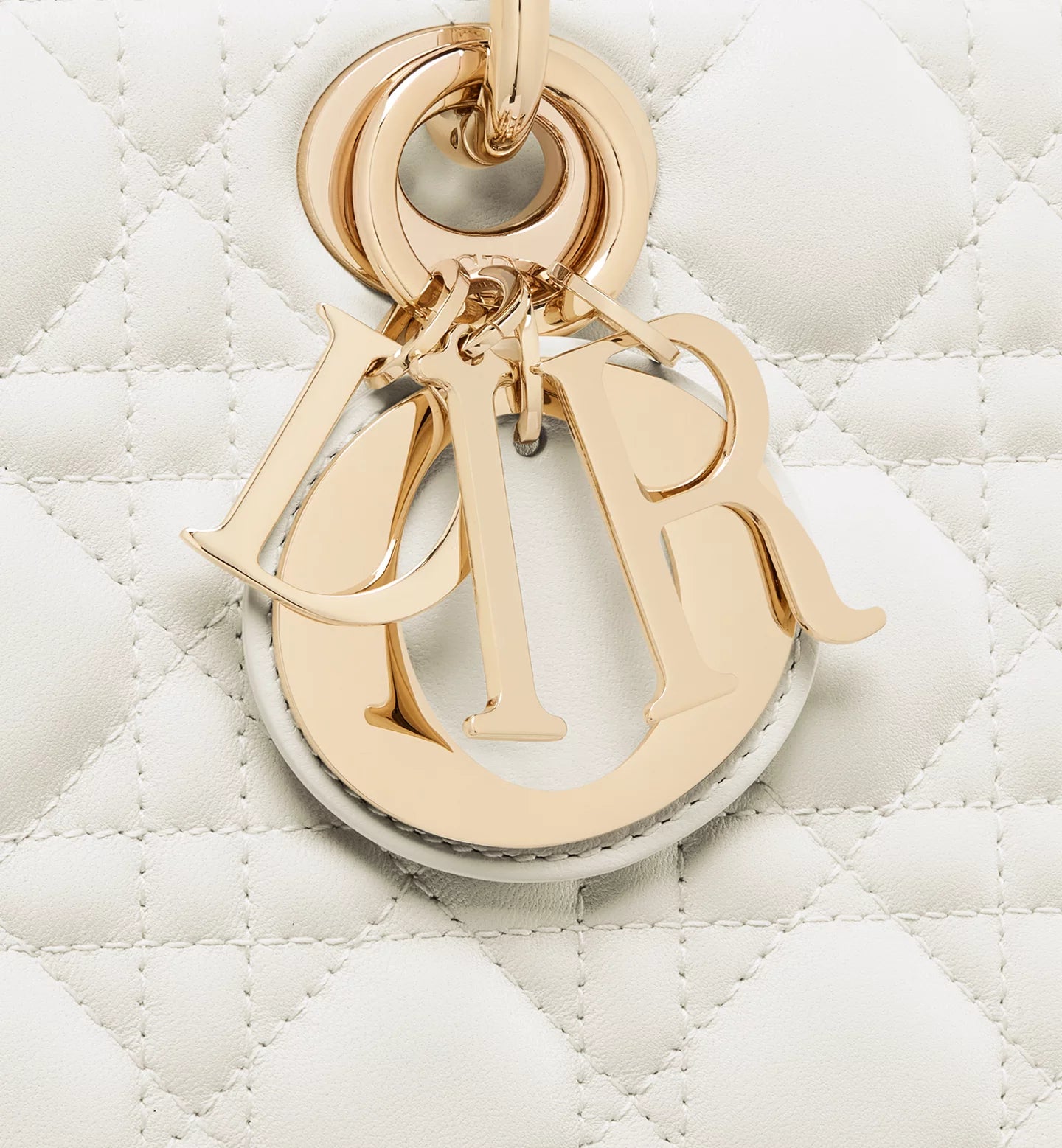 The Lady D-Joy bag is the quintessence of the Maison's refined style. Elegant and refined with its timeless charm, it follows the legendary minimalist aesthetic of the Lady Dior line. Made of milk-colored lambskin with Cannage stitching, it is embellished with D.I.O.R. metal pendants with a pale gold finish. Characterized by medium size and equipped with a removable chain shoulder strap and another adjustable leather, also removable, it is ideal to take with you every day, by hand, on the shoulder or crossbody.