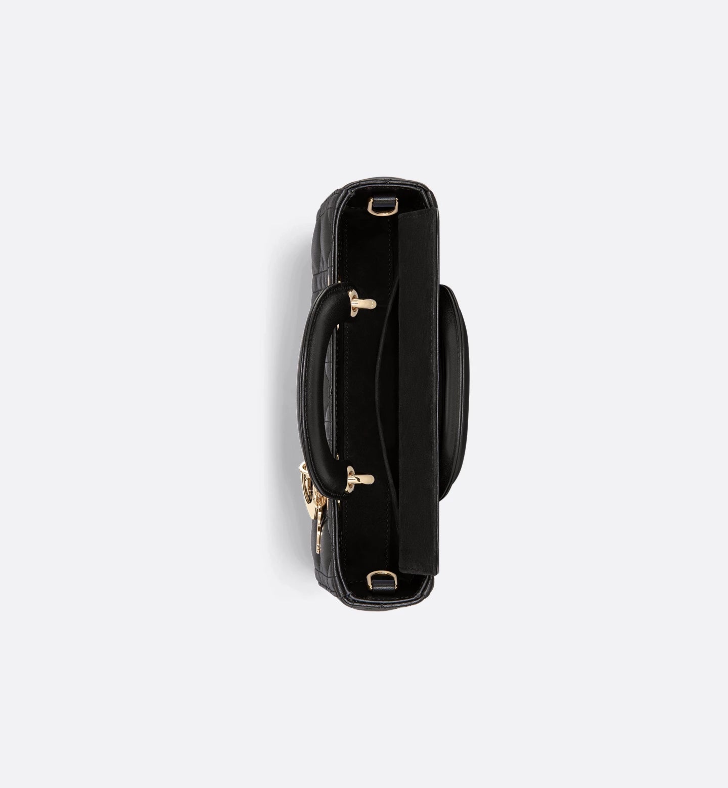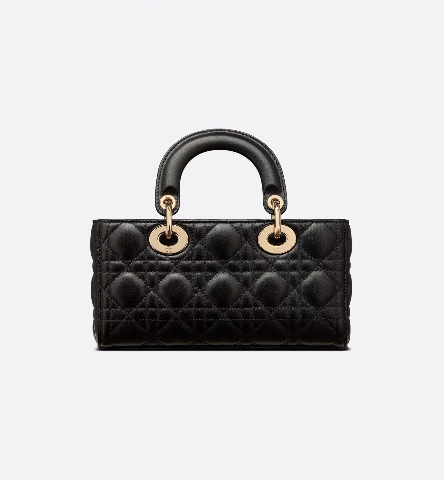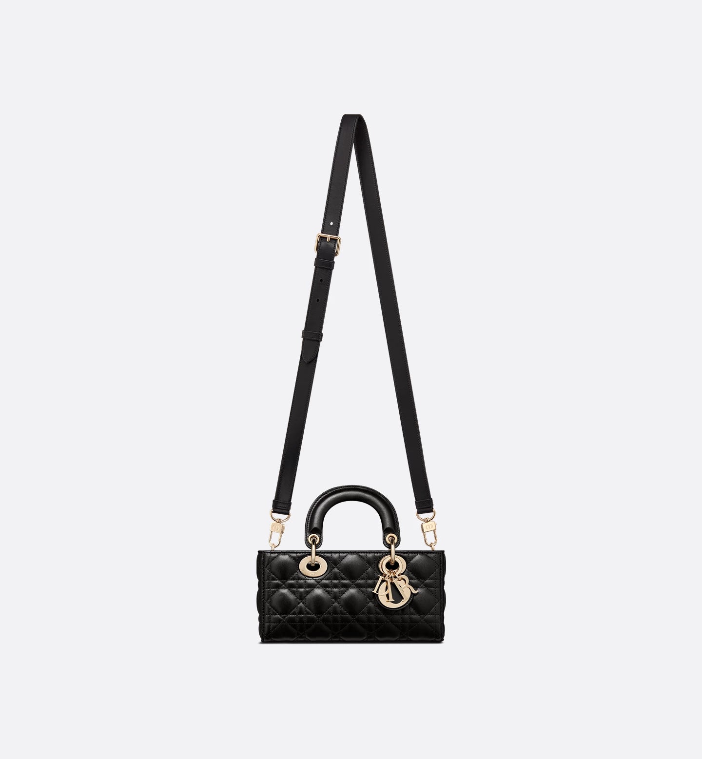 The Lady D-Joy bag, characterized by the iconic and minimalist aesthetics of the Lady Dior line, embodies the quintessence of the refined style of the Maison. Elegant and timeless, this version is made of black lambskin with Cannage stitching and is embellished with D.I.O.R. metal pendants with a pale gold finish. Characterized by small size and equipped with a removable chain shoulder strap and another adjustable leather, also removable, it is ideal to carry with you every day, by hand, on the shoulder or crossbody.