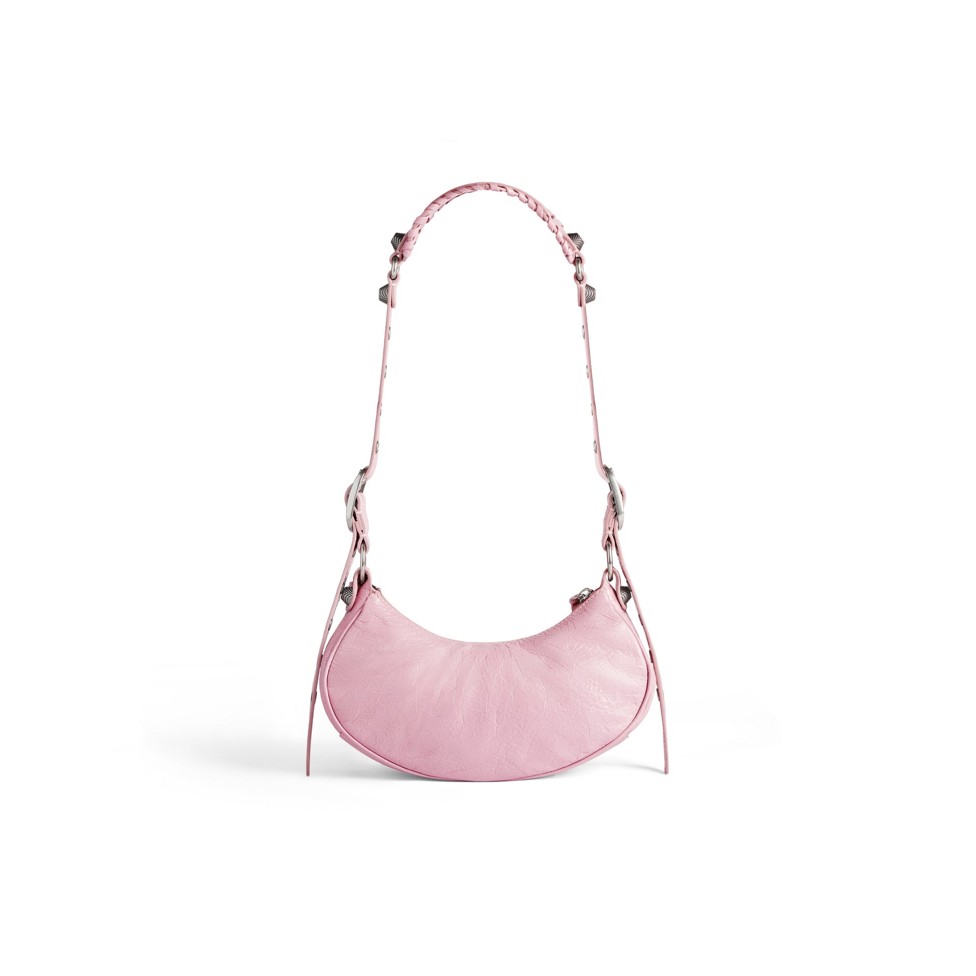 Le Cagole XS Shoulder Bag in light pink Arena lambskin, aged-silver hardware.