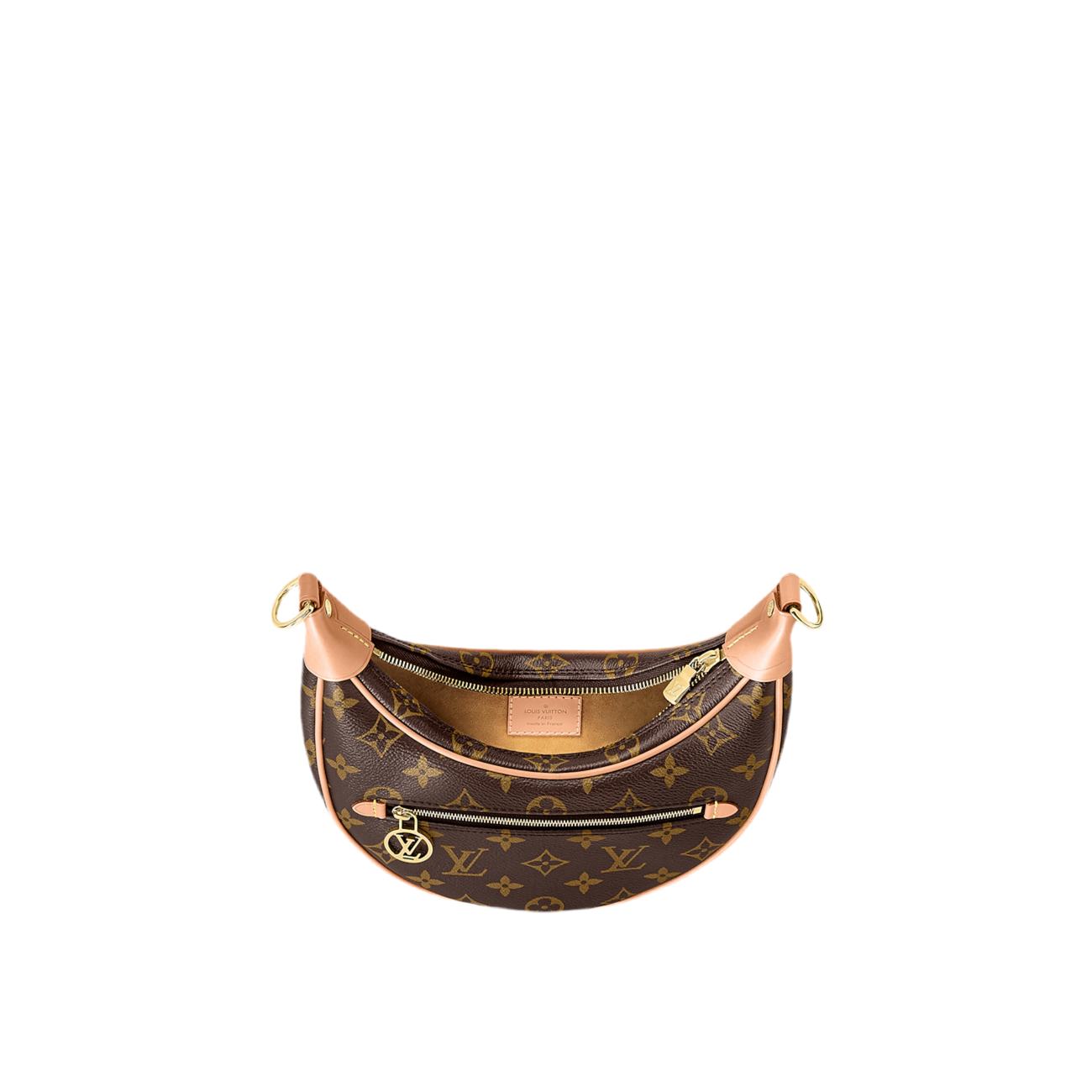 Created by Nicolas Ghesquière for the Cruise 2022 Collection, the Loop handbag features a half-moon silhouette, inspired by the Croissant bag from the House archives. It has a body-friendly, compact shape and a chain for shoulder carry, as well as a cross-body leather strap. The front zip pocket closes with an LV Circle zip pull.