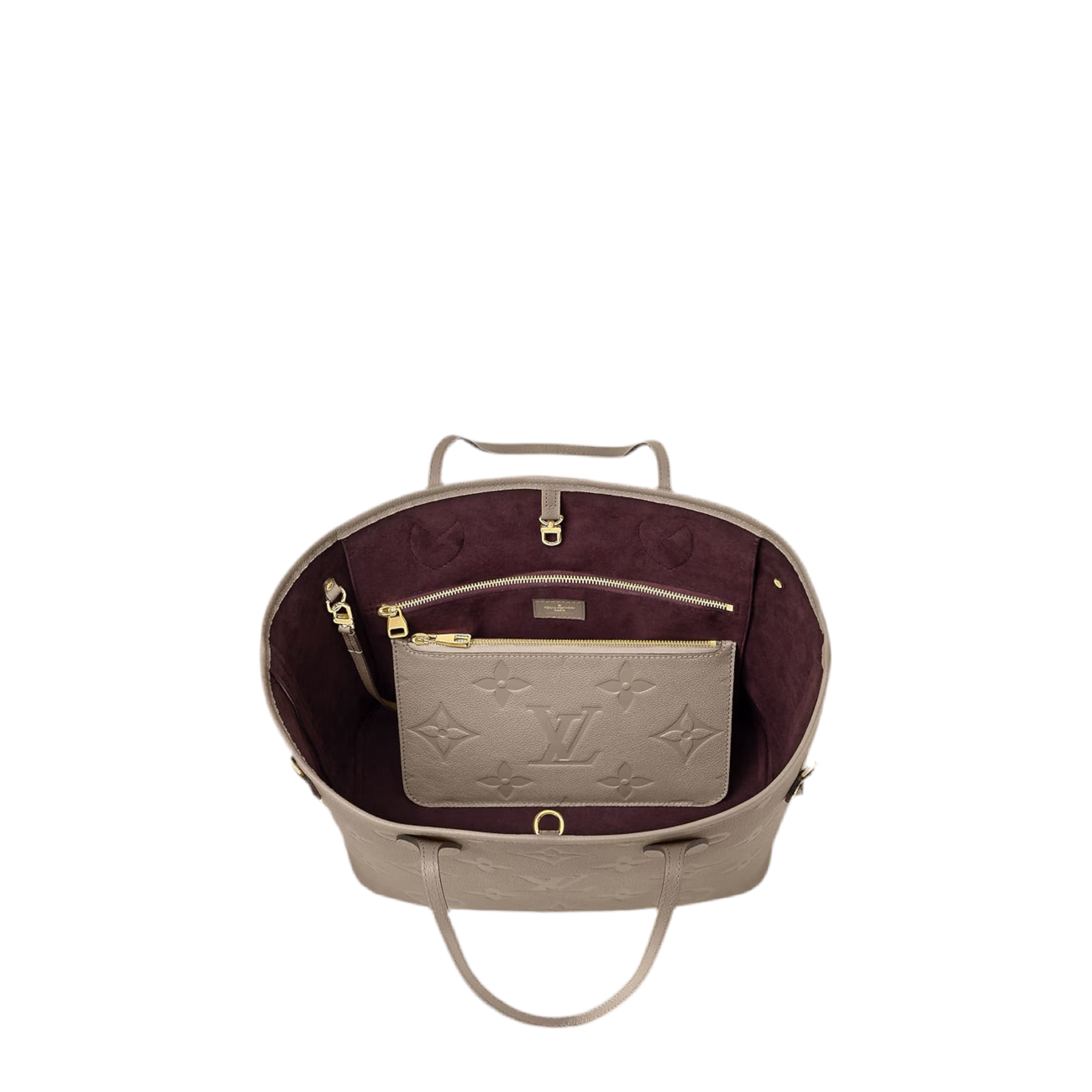 The Neverfull MM bag is reinterpreted in soft Monogram Empreinte leather, embossed. The oversize model is ideal for everyday use and can be worn comfortably on the shoulder, thanks to the long handles, or on the arm. By pulling the side laces, the spacious creation is transformed into an accessory of particular elegance.