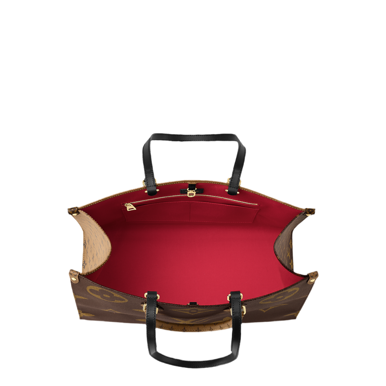 Fashioned from Monogram Giant canvas, the OnTheGo GM tote bag is as striking as it is practical. A Monogram Reverse pattern on the sides and handles creates a stylish contrast in color and scale. With its generous capacity, shoulder straps and iconic Toron top handles, this versatile GM model is an ideal bag for everyday wear.