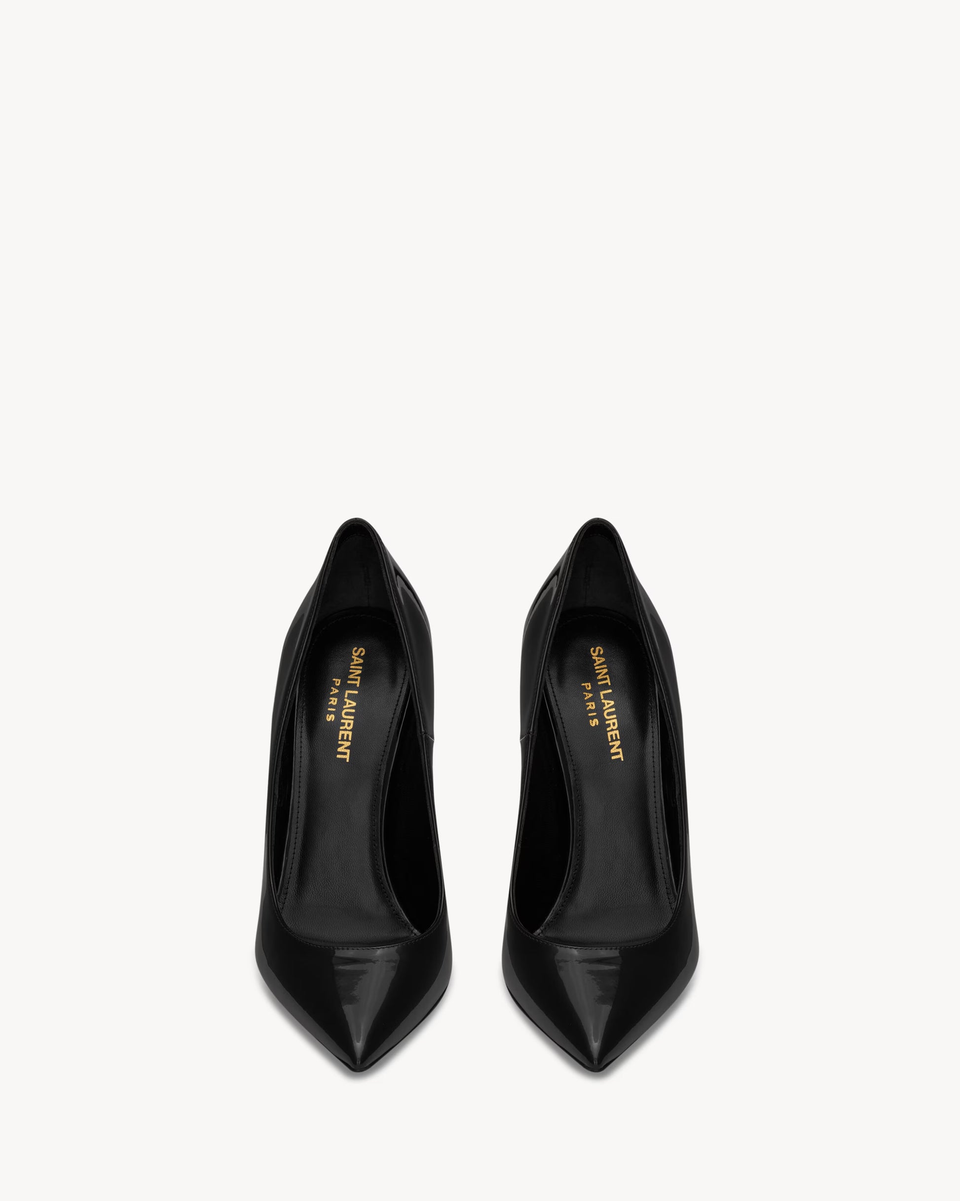 PUMPS WITH A STRUCTURED HEEL DECORATED WITH METAL CASSANDRE AND FEATURING A LOW-CUT VAMP.