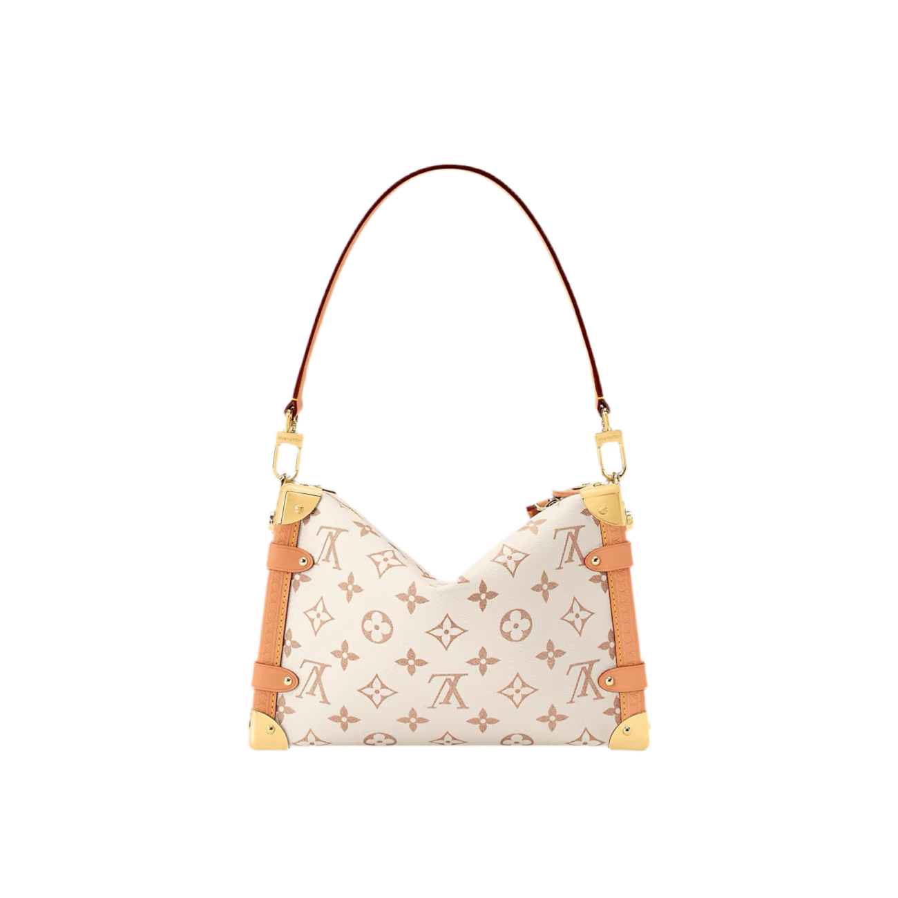 The Side Trunk MM bag, from the Cruise 2024 fashion show, stands out for the reinterpretation of the iconic Louis Vuitton Monogram canvas in the Dune version. The exclusive model, inspired by the shades of sand, is characterized by natural cowhide finishes and the sparkling s-closing system. The accessory, completed by the golden metal corners, is ideal to enrich any outfit.