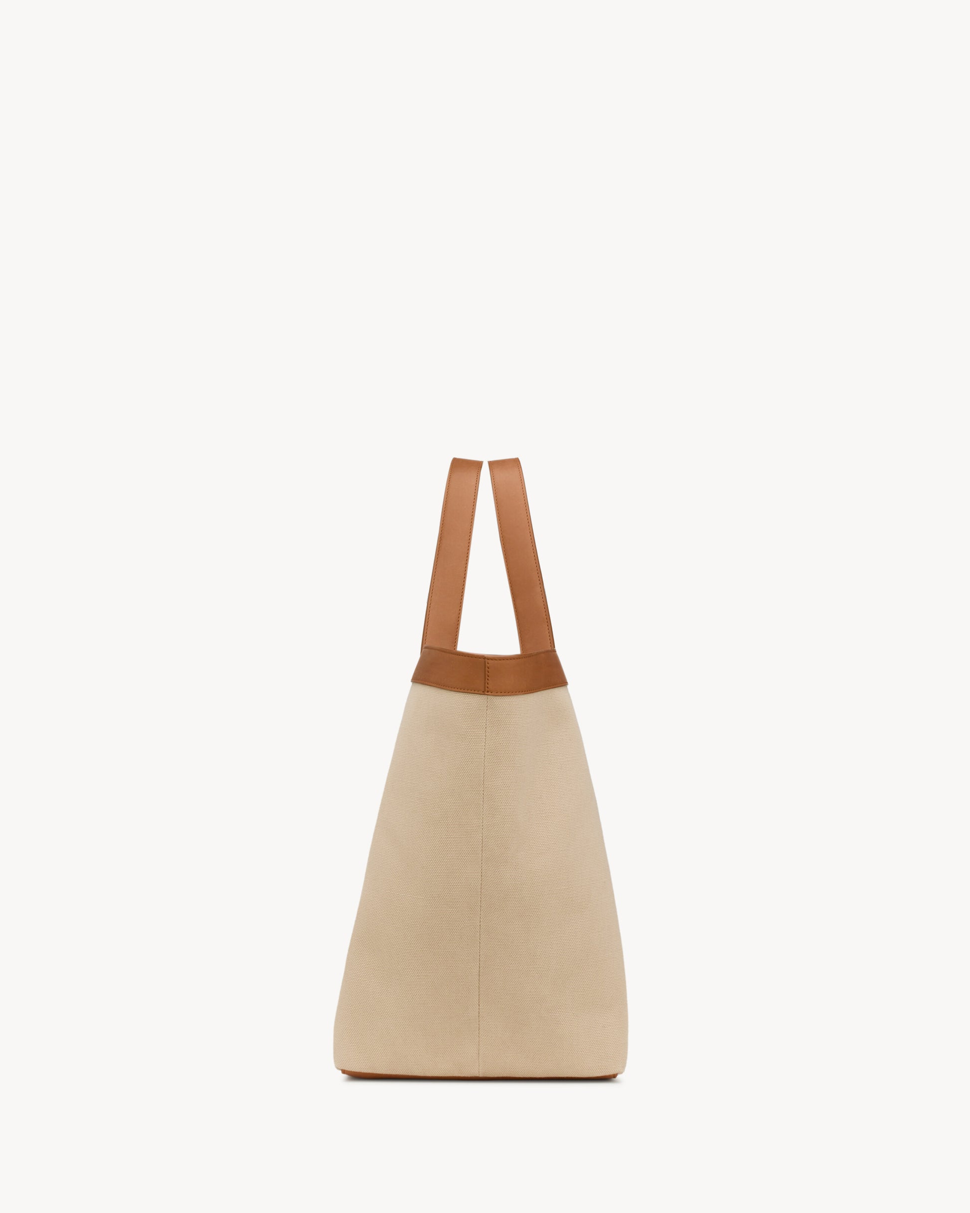 LARGE TOTE IN CANVAS AND VEGETABLE-TANNED LEATHER DECORATED WITH A SUBTLE Y STITCHED SIGNATURE, INSPIRED BY THE HOUSE'S ARCHIVES.